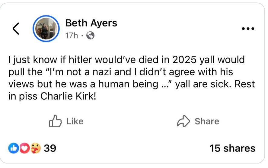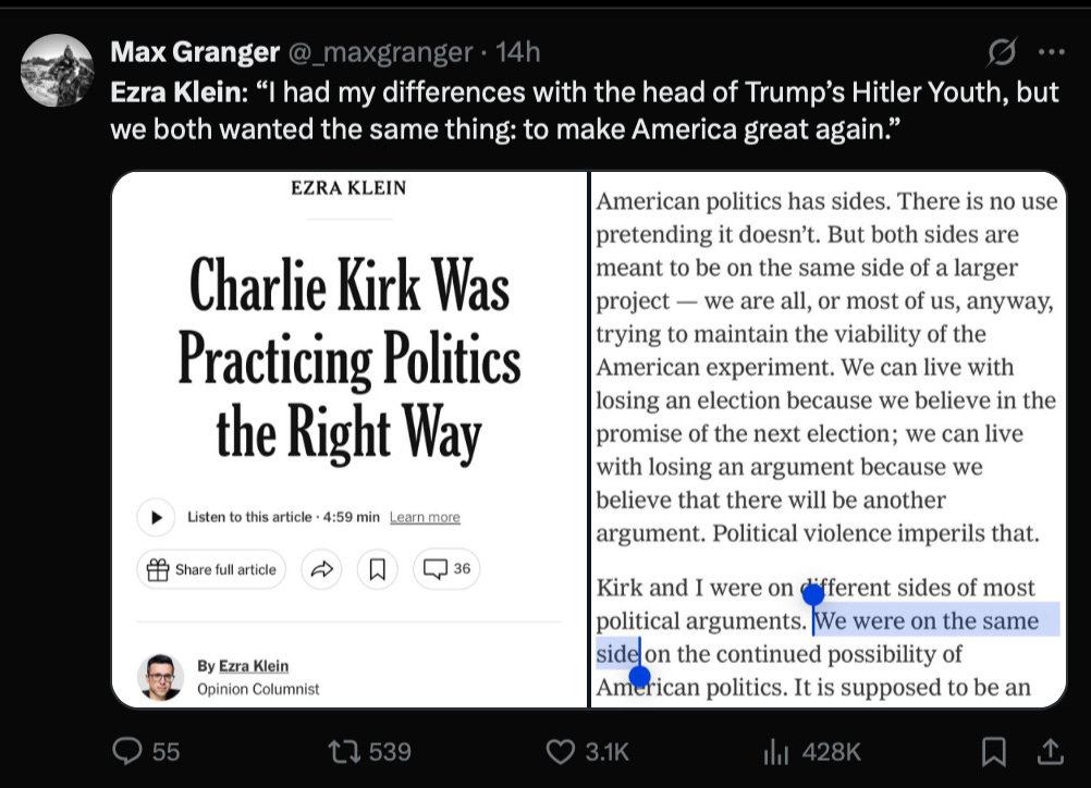 En todas sus mentiras sobre Charlie Kirk, sus interminables publicaciones con cientos de miles de me gusta que apuntalan su propia bondad fabricada como si dijeran: Mira, todavía tenemos la autoridad moral, de alguna manera se vieron peor que nunca.